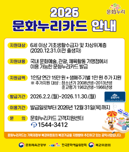2026 문화누리카드 지원 대상