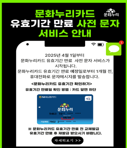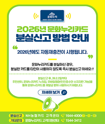 위 조건을 충족하면 별도의 신청 절차 없이 2026년 지원금이 자동으로 충전됩니다. 이 경우 카드를 새로 발급받을 필요 없이, 기존 문화누리카드를 그대로 사용할 수 있어 매우 편리합니다.